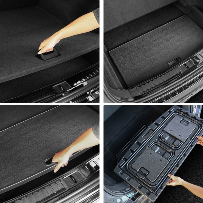 - Hidden Trunk Storage Folds flat and stores under the original trunk cover, staying out of sight and taking up no extra cargo space when not in use
