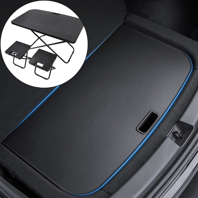- Model Y (2020–2024) Custom Fit Designed exclusively for the 5-seater Model Y, with dimensions matched to the rear trunk for a seamless fit as a portable workspace or dining surface